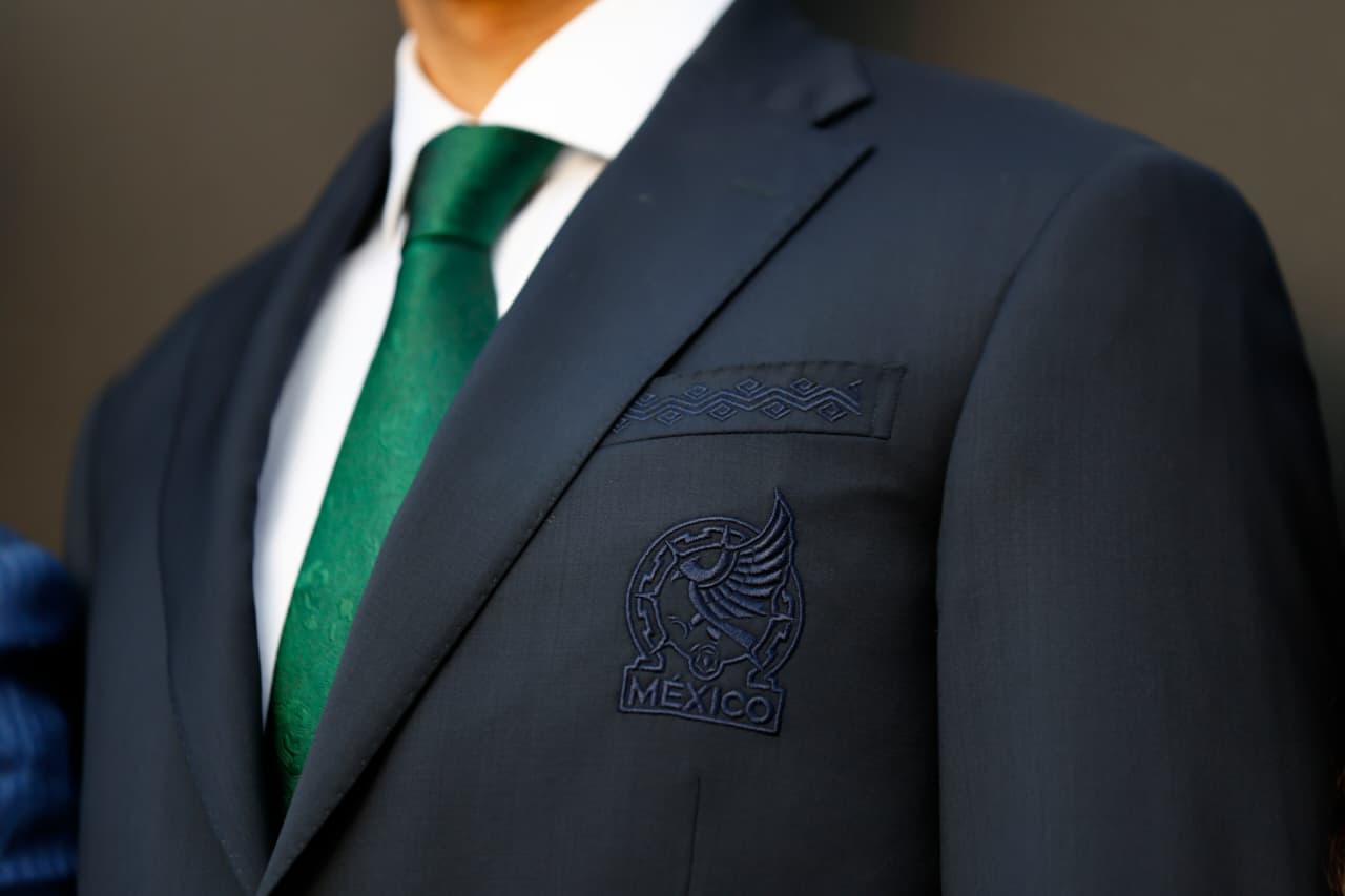 El traje sastre que lucirán jugadores, cuerpo técnico y directivos durante los traslados y llegada a los hoteles de concentración está hecho a la medida y con tela italiana; el outfit cuenta con detalles alusivos a las culturas prehispánicas y la pasión del futbol. El traje sastre que lucirán jugadores, cuerpo técnico y directivos durante los traslados y llegada a los hoteles de concentración está hecho a la medida y con tela italiana; el outfit cuenta con detalles alusivos a las culturas prehispánicas y la pasión del futbol.